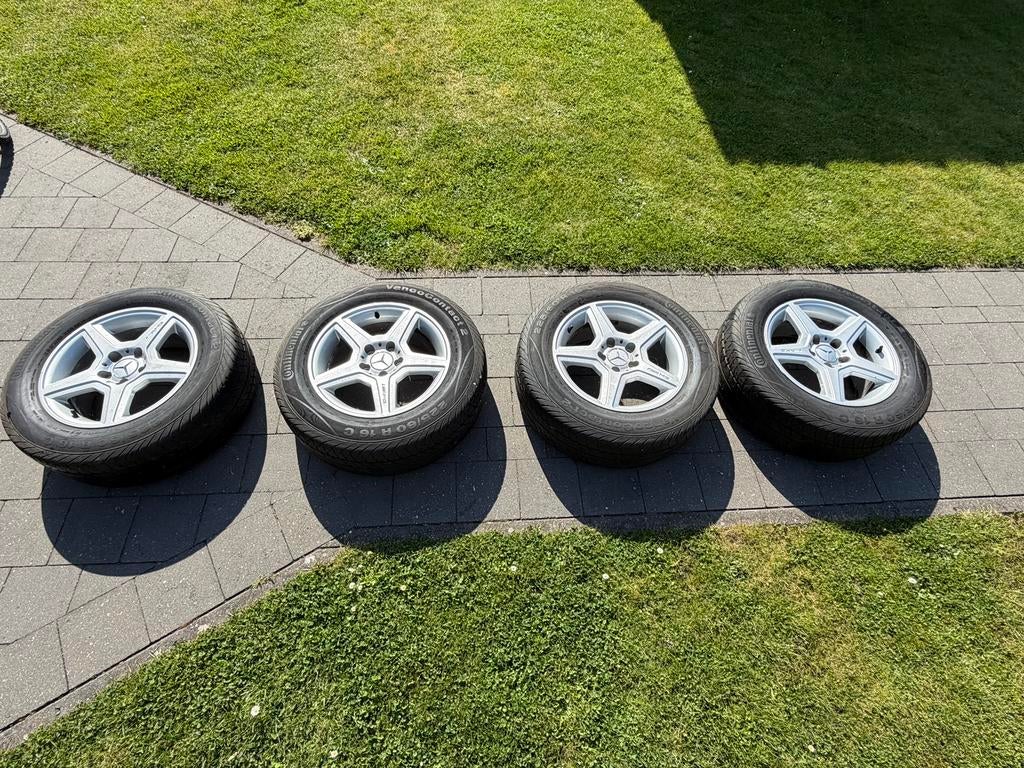 - Orgineel AMG Mercedes velgenMercedes velgen 225/60/16 c versterkt et 35 met mercedes wieldoppen origineel met continantal banden 6a7 mm profiel.Gebruikt Ophalen