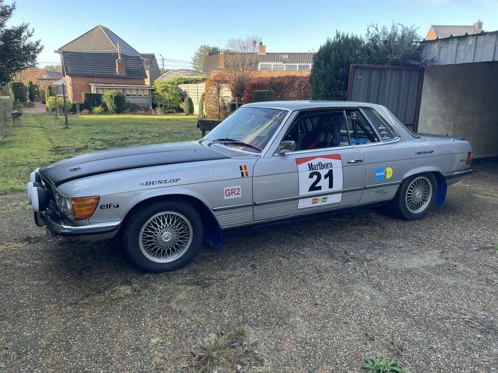 Mercedes 450 slc (1972) - omgebouwd naar rally-look-alike - motor 4.5L v8 (225 pk) - automaat - banden toyo semi slick - originele wielen/banden beschikbaar - kuipzetels met 4-puntsgordels - keuring t