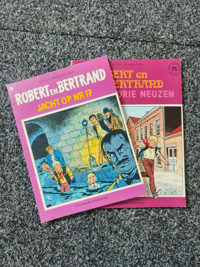 - 2 strips Robert en Bertrand2 strips robert en bertrand in gelezen maar goede staat. Amper gebruikssporen. Volgende titels: - jacht op nr 17 - de drie neuzen prijs is voor de 2 strips samen.Gelezen Ophalen of Verzenden