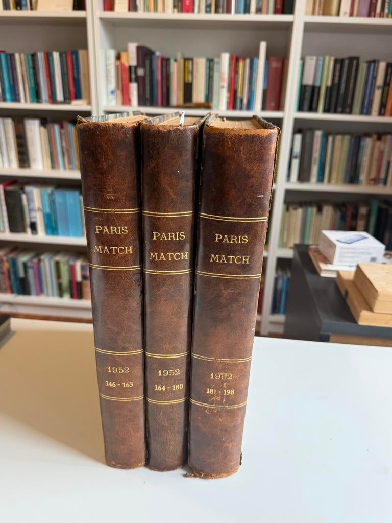 6 apr 26FonsHeist-Op-Den-Berg - Paris Mach, volledige jaargang 1952 ingebonden in drie delenParis match – volledige jaargang 1952 (3 ingebonden delen) complete jaargang 1952 van paris match, ingebonden in drie fraaie leren banden. Bevat alle nummers van nr. 146 (5 Januari 1952) t/m nr. 198 (Gelezen Ophalen of Verzenden