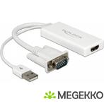 De meeste HDMI naar VGA adapters ondersteunen alleen videotransmissie en niet het geluidssignaal. Dit komt doordat VGA enkel video kan overdragen. Als je ook geluid wilt afspelen, moet je een aparte audiokabel gebruiken of een adapter zoeken die ook geluidsfunctionaliteit aanbiedt, maar dit is minder gebruikelijk.