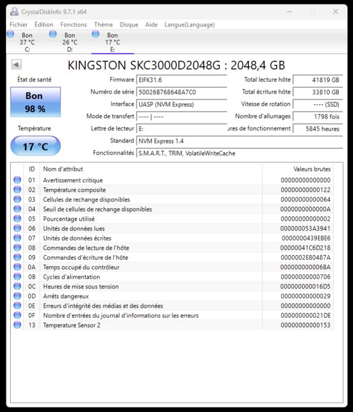 GisterenfashqXSint-Pieters-Leeuw2TB M2 - KC3000 - 970 EVO PLUSOphalen of VerzendenSamsung 970 evo plus - € 175 kingston kc3000 - € 200Sint-Pieters-LeeuwGisteren - Samsung SSD 970 EVO Plus 2 TB (NVMe)Ik verkoop een samsung 970 evo plus ssd van 2 tb in uitstekende staat. Gezondheid: 100% (zie crystaldiskinfo-opname) zeer weinig gebruikt: ~15 tb geschreven op 1200 tb mogelijk of nauwelijks 1% perfecZo goed als nieuw Ophalen