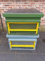 11 apr 26nuydensGeel - Bijen kasten grenenhout3 complete bijen kasten 2.4Mm grenenhout behandeld met lijnolie kunststof bodem en dak+ 1x reserve bodem en dak verder: 4x varroa lade, en vliegschuif in totaal 5 broedkamers met ramen zonder was 1 re