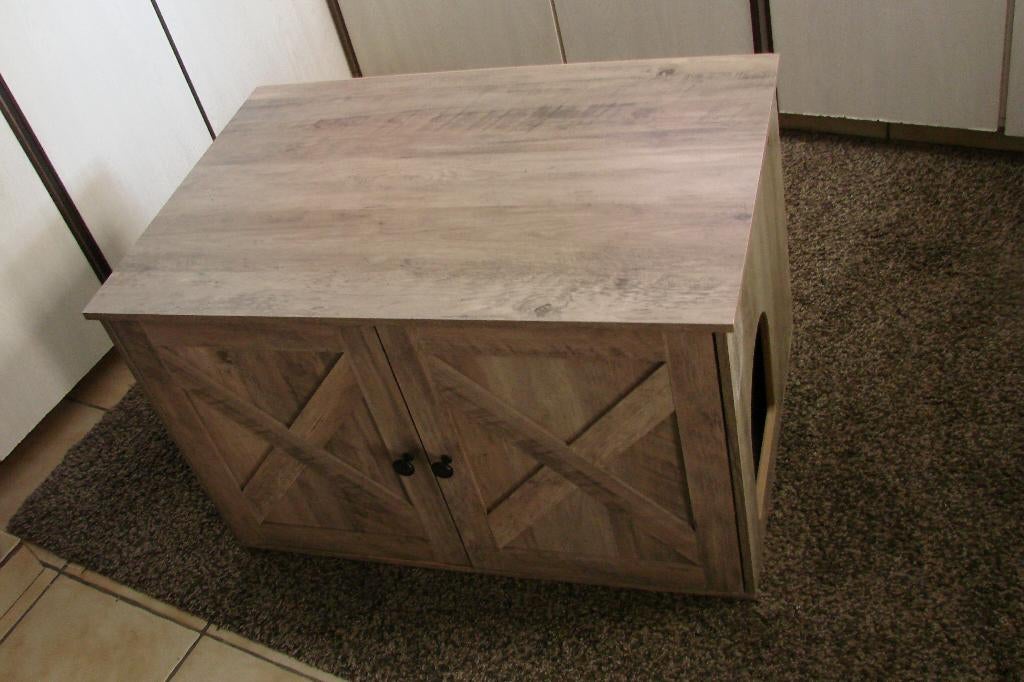 - kattenhuisje-kast voor kattenbak: nieuwKattenbak -speelhuisje voor poes met tussenschot en 2 deurtjes nieuw staat ideaal meubel om kattebak te verbergen of als speel en rusthuisje voor poesNieuw Ophalen