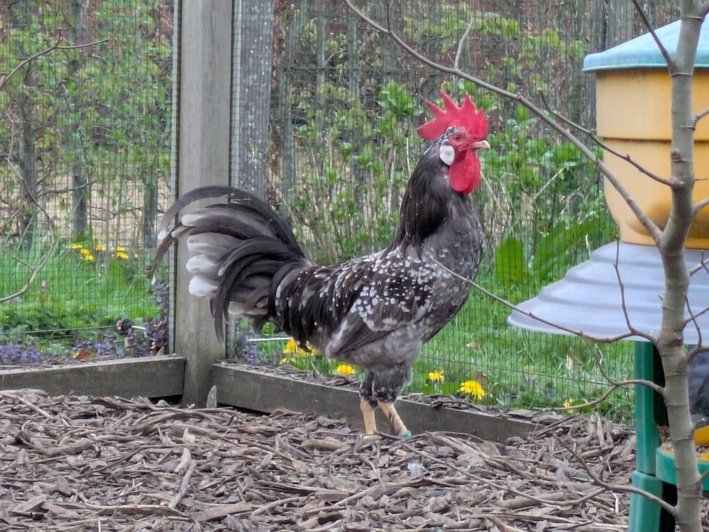 - Ancona blauw-witgepareld haanHaan heeft zijn werk gedaan mag verhuizen €15 tref legkippen kippen kip haan hanen ancona groothoender