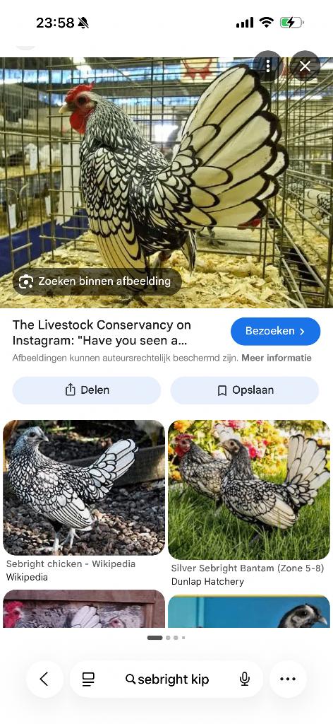 - Gezocht: sebright kippenIk zoek enkele sebright hennen en een haan. Liefst zilver zwart gezoomd. Andere kleuren mogen ook aangeboden worden.