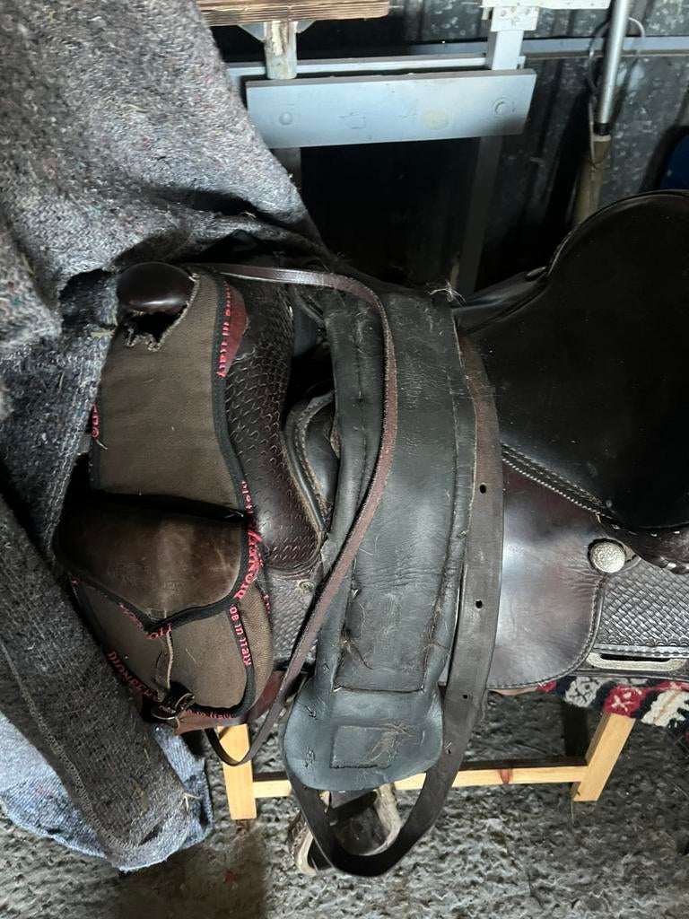 24 feb 26Henry BerquinDeurle - Western zadel en hoofdstelAls nieuw, westernzadel en hoofdstel met bit. Heeft 1 a 2 x op gelegen en voor de rest op de zadeldrager aan de muur gehangen in de woonkamer. Niet broos, netjes onderhouden. Niet vragen naar de maatZo goed als nieuw Ophalen