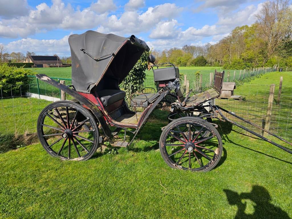 Gistereneric sDeinze - Antiek rijtuig in nette staat. Enkelspan. Incl koetslampenAntiek rijtuig in nette staat. Enkelspan. Incl koetslampen wielmaat: 90 / 110 cm voorzien van enkelspan koetslampen voorbank en voorbord neerklapbaar bekleding en houtwerk in nette staat prijs 950,- vGebruikt