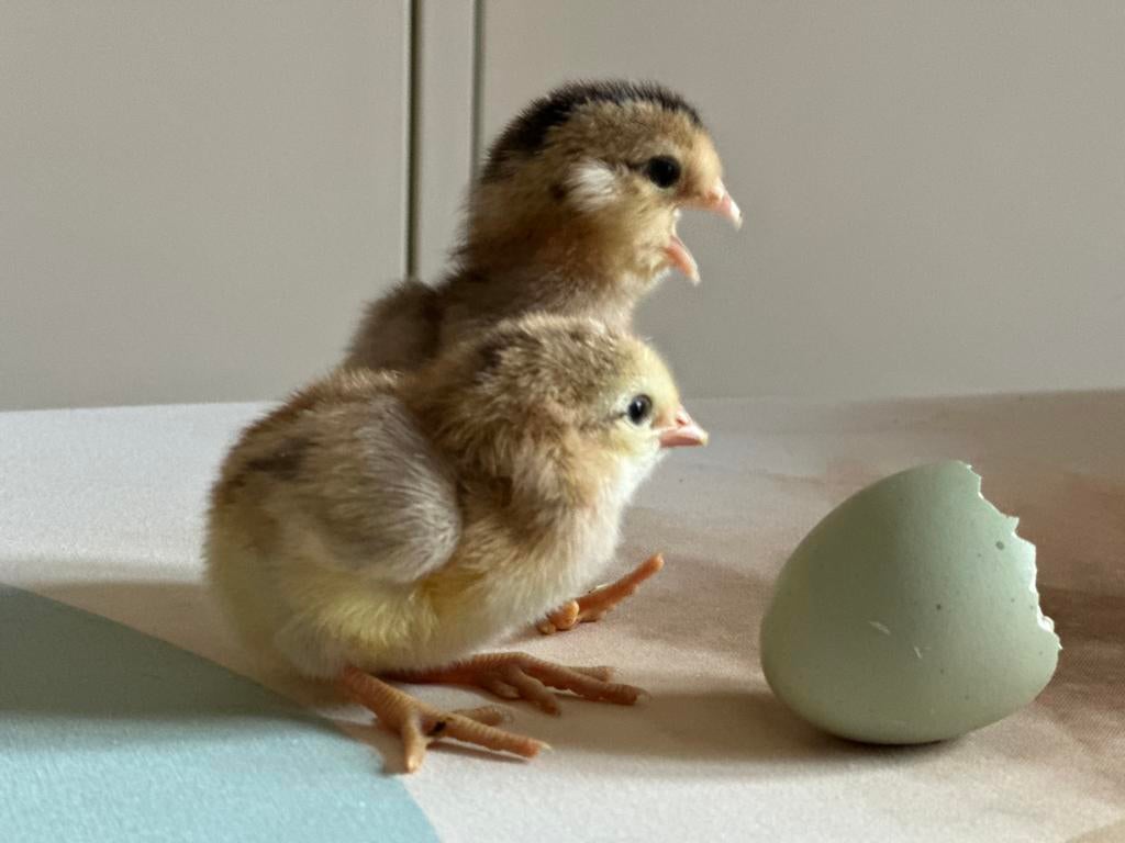 - Moeder en kuikensDe uitkomst van de moeder was op 15 augustus 2025 de kuikens zijn op 28 maart 2026 uit het ei gekomen. Moeder en 9 kuikens zijn te koop. “Eierlegkippenrassen zijn marans, leghorn en sussex.”