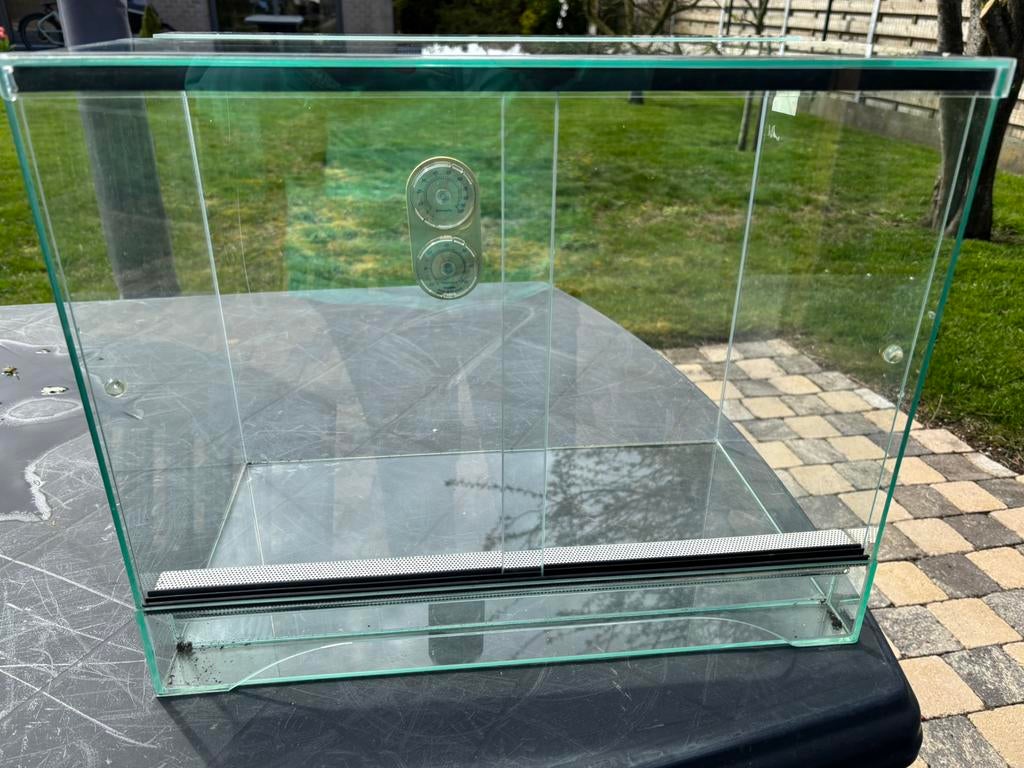 - Terrarium met achterwandGlazen terrarium met klapdeuren achterwand geen barsten of andere schade 51 lang 25 diep 30 hoogZo goed als nieuw Ophalen