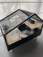 - HamsterkooiHamsterkooi incl. - Loopradje - waterreservoir - huisje - 2 voederbakken - emmertje hamstervoeding - plastic bal waar je hamster kan insteken voor als je de kooi poetst.