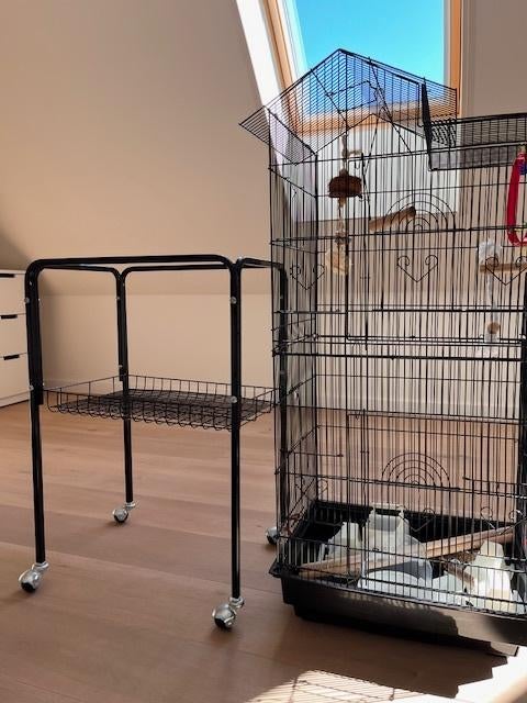 4 apr 26ROBHove - Vogelkooi met staanderVogelkooi met staan op wieltjes nog in zeer goede staat. De kooi kan langs boven geopend worden. U krijgt er 4x voederbakjes, stokjes, schommel en speelgoed bij. Afmetingen: b 67cm d 47cm h 155cm (metZo goed als nieuw Ophalen