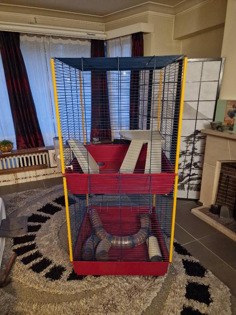 9 apr 26PietersBrussel - Grote fretkooi, knaagdier, enz.Ik verkoop een grote kooi voor fretten of andere dieren. In zeer goede staat. Het heeft verschillende tunnels, 3 platforms, 2 hellingen, een metalen aanvoer (niet op de foto), een trog. Het is heel eeGebruikt Ophalen