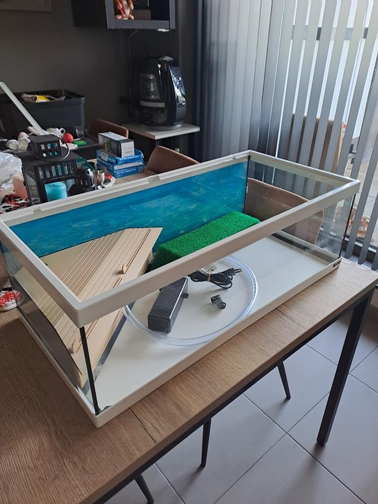 - Schildpadden aquarium witSchildpadden aquarium met filter pomp nog in prefechte staat. Reden dat ik hem verkoop dubbel schildpadden aquarium lengte 75cm breedte 35cm hoogte 25cm geen koerier diens zelf op halen...Ophalen