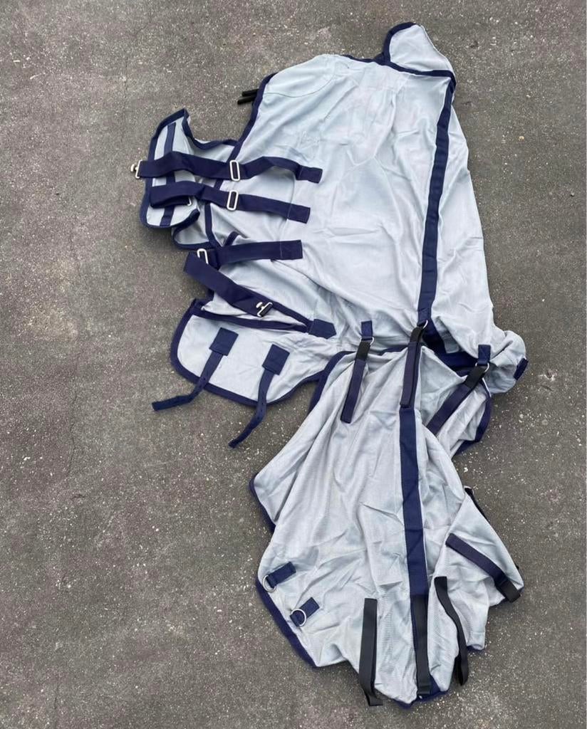 - Vliegendeken shetlander 65/1151 zomer gebruikt, maar nu te klein. Geen beschadigingen, enkel verkleuring van de zon. Met afneembare halsOphalen