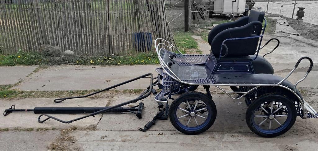 20 mrt 26KrisHerzele - 2 wieler koets paard pony2 wielige zeer rustig te rijden koets door de balansregeling onderaan de koets. Schokt niet tijdens het rijden. Geremd en geveerd en de burrys zijn verstelbaar volgens de grote pony of paard . Bij ons