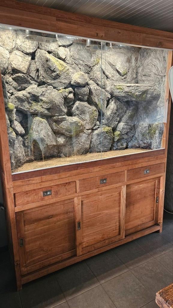 8 mrt 26GetteKortenberg - Groot terrarium!Groot terrarium met water aansluiting! Ophalen met meerdere personen heel zwaar en groot! 2M15 breed 75cm diep 184cm hoogte (met de kast eronder) terrarium alleen is in hoogte 120cmZo goed als nieuw Ophalen
