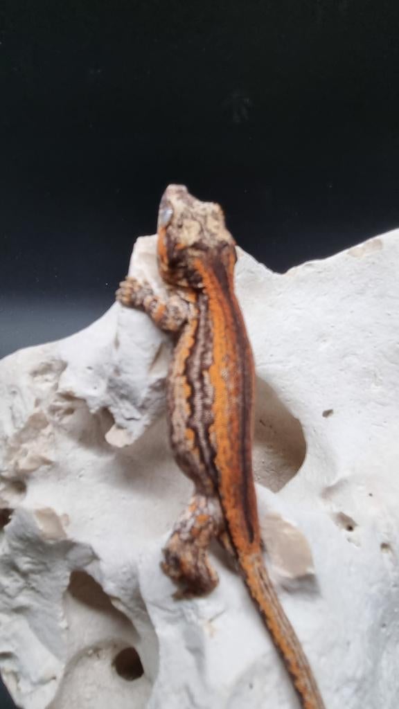 13 apr 26MoniqueNLKasterlee - Rhacodactylus Auriculatus GargoyleNk 08/2025 man orange red stripe. 30Gr. Eet goed. Nutrition en krekels. 2 Laatste foto's zijn de ouders. Prijs bespreekbaar zie ook mijn andere zoekertjes gekko, gecko.