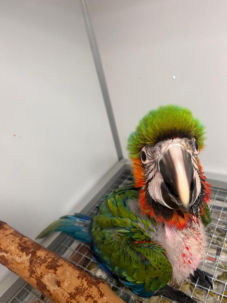 15 mrt 26IkkMaldegem - Harlekijn ara (freeflight getraind )Deze knappe jonge man van eind 2025 is een echte knuffelkont. Een echte veiendelijke reus want het is een vorse man. Hij bijna klaar met zijn training en zou al heel snel mee kunnen naar buiten. Hij i
