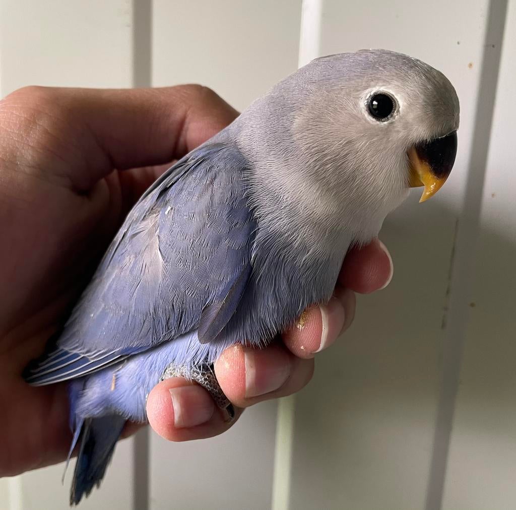 GisterenvogelvriendKontich - Agapornis (dwergpapegaai)Jonge handtamme agapornis roseicollis aqua blauw/lichtgrijzigblauw geboren 21 maart, momenteel 3 weken oud. Mag het nest verlaten vanaf eind volgende week indien je wenst verder op te voeden met hando