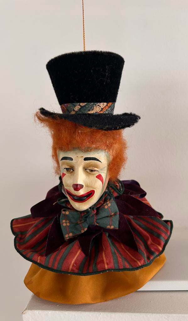 23 dec 25TopadvertentieFelinaworld.comHeel België - 🧡 Clown Ornament✨️ dit is een prachtige zeldzame vintage clown ornament / hanger met een porseleinen gezicht met clownmake-up, inclusief een rode neus een vrolijke gezichtsuitdrukking, oranje krullend haar en een kleOphalen of Verzenden