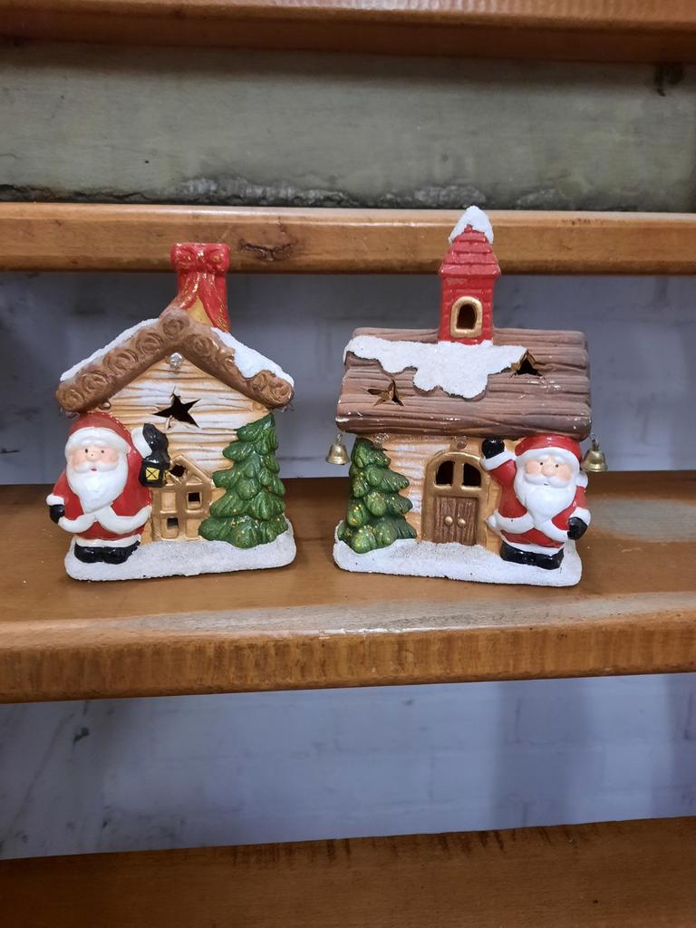 - Oude kersthuisjes en kerstman, nieuwOude kersthuisjes en kerstman, verlichten met theelichtje. Nieuw. Prijs per stuk.Ophalen of Verzenden
