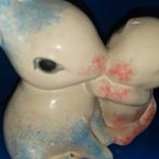 Beeld koppeltje konijnen r. Scalli blauw roze pasteltinten