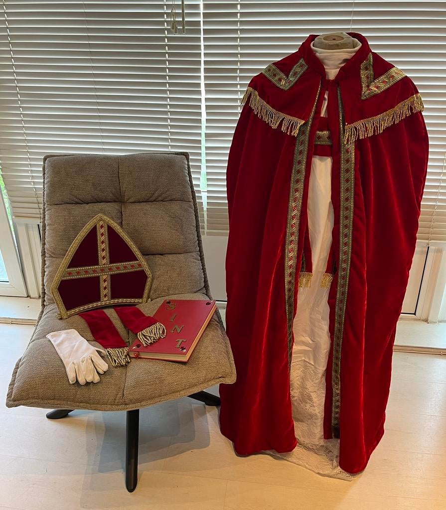 25 jan 26Lunacathan RSKlemskerke - Compleet Sinterklaas kostuumLuxueus sinterklaaskostuum, fluweel rood. Bestaat uit: - mantel - albe - mijter - staf - professioneel baardstel - handschoenen (nieuw) - ring (nieuw) - koordZo goed als nieuw Ophalen