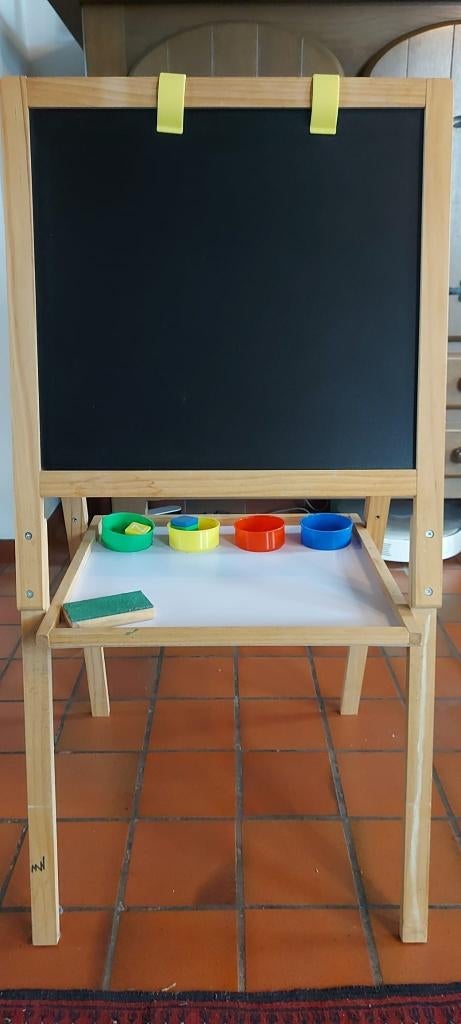 4 okt 25calogeroEvere - Opvouwbaar dubbelzijdig kinderbord met papierrolDubbelzijdig opvouwbaar kinderbord met - schoolbord voor krijttekeningen, - magnetisch whiteboard voor uitwisbare markertekeningen, - vervangbare rol papier. - 2 Planken en 3 potten (waarvan één lichtGebruikt Ophalen