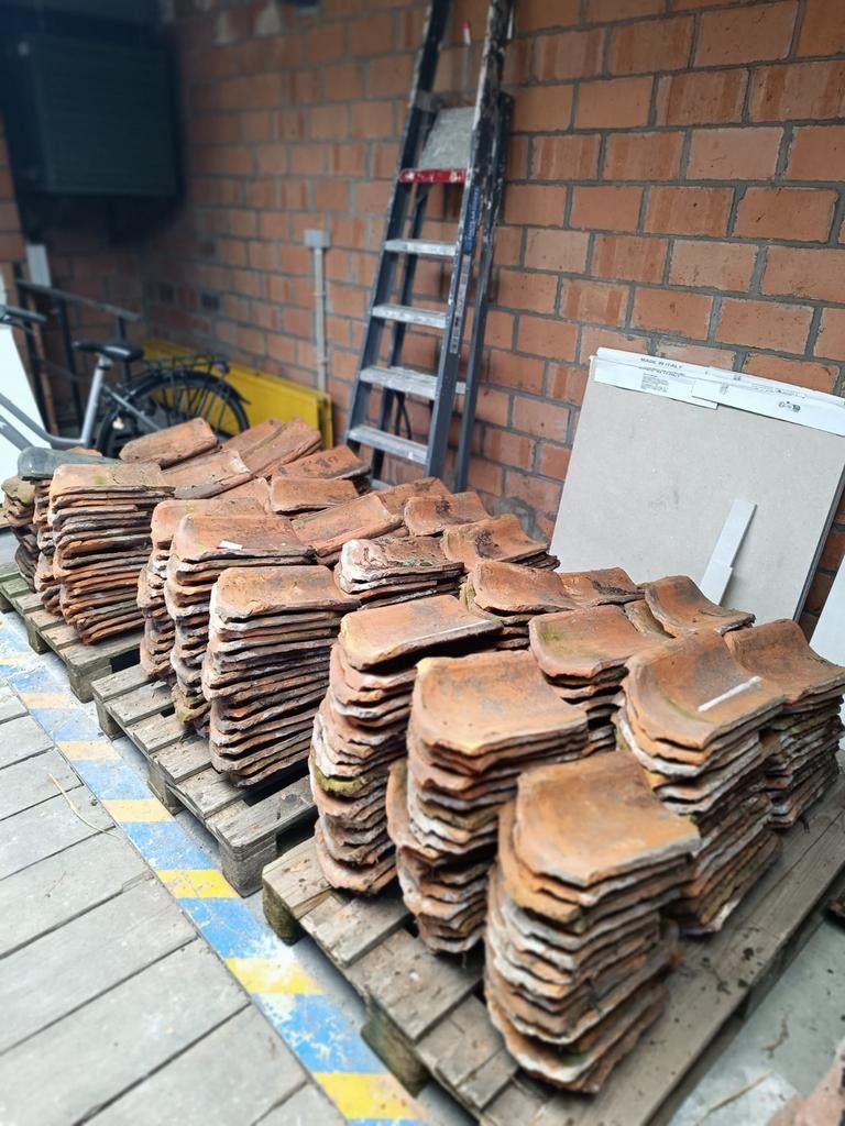 13 apr 26Vln_NlsDiepenbeek - Dakpan stormpan PottelbergDakpannen type stormpan, waarschijnlijk pottelberg 901. Pannen liggen momenteel nog op het dak en mogen weg juni/juli 2026 wegens renovatie. Naar schatting tussen 1500 en 2000 stuks. Voor- en achterziGebruikt Ophalen