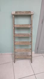 - Oude houten schildersladder, vintage. Heel decoratiefOude houten schildersladder met verfsporen en 6 treden. Vintage, heel decoratief, mooi om plantjes op te zetten. Hoogte 127 cm, breedte bovenaan 41 cm, onderaan 50 cm. Enkel ophalen te ronse. TransporGebruikt Ophalen