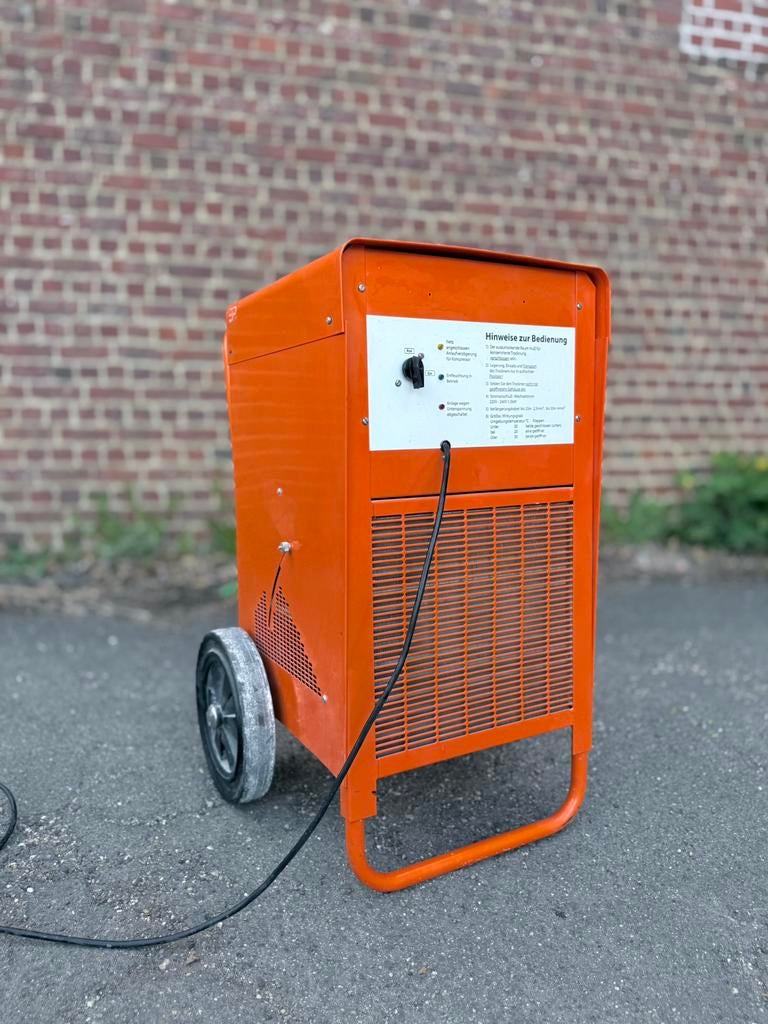 Een bouwdroger is een apparaat dat is ontworpen om de luchtvochtigheid in een ruimte te verlagen, waardoor het drogen van vochtige materialen zoals muren, vloeren of plafonds wordt versneld. Dit gebeurt door lucht aan te zuigen, deze te verwarmen en vervolgens weer uit te blazen. Hierdoor wordt de vochtige lucht afgevoerd en kan de droge lucht de vochtigere materialen helpen drogen.