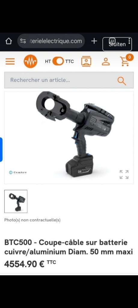 5 jul 25crafterStrombeek - Bever - Hydralische kabelschaar cembreKabelschaar cembre metabo 18v 4 ah tot 50 millimeter diameter hydraulisch perfecte staat kabels,kopers,vob, ..Zo goed als nieuw Ophalen