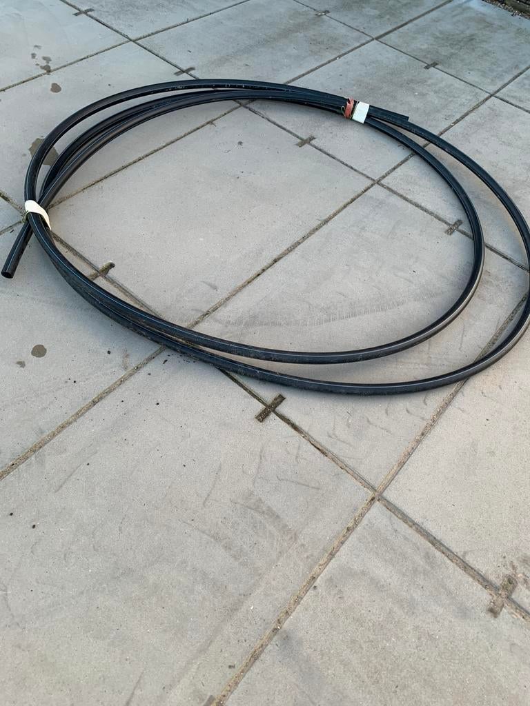 19 feb 26EddyDeurle - Polyethyleen darm, PE slang, wateraanzuigslangPolyethyleen slang van 1" diameter met messing aanzuigkorf en terugslagklep. Lengte ongeveer 11 m, geschikt voor drinkwater, kan gebruikt worden als wateraanzuig uit waterput voor waterpomp. GeenGebruikt Ophalen