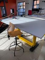Ja, goed onderhoud is essentieel voor een lange levensduur van je tekentafel. Zorg ervoor dat je de tafel regelmatig schoonmaakt om stof en inktresten te verwijderen. Controleer ook of de scharnieren en verstelmechanismen soepel werken en smeer deze indien nodig. Het is verstandig om de tafel op een droge plek te bewaren om kromtrekken te voorkomen. Als je met inkt of verf werkt, gebruik dan een ondergrond om schade aan de tafel te voorkomen.