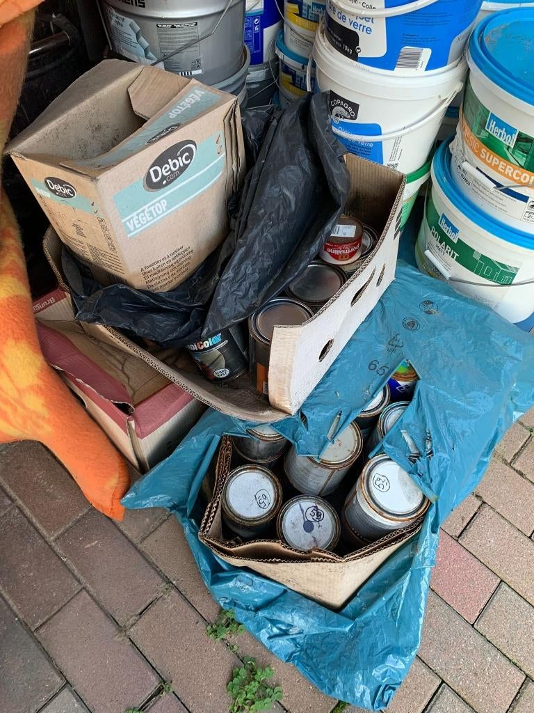 - restjes verf - binnen- en buitenverfVerschillende potten verf (zowel binnen- als buitenverf, enkele potten met restjes lakverf, ....). Geef wat u wenst hiervoor. Alles meenemen aub. Enkel op te halen in lummen.Gebruikt Ophalen