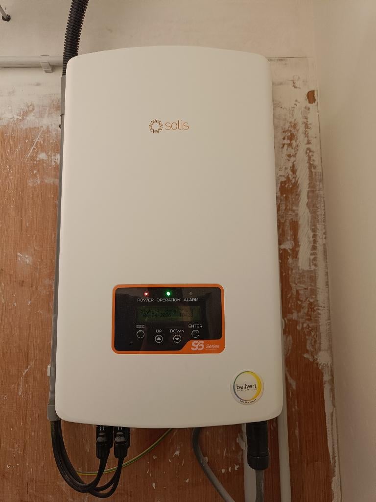 VandaagJéSteenokkerzeel - Solis omvormer voor zonnepanelen - S6-GR1P5KSolis enkelfase omvormer van anderhalfjaar oud. Vervanging was voor ons nodig vanwege het plaatsen van een thuisbatterij (niet voorzien in het originele huis). Garantie tot 10 jaar via het serienummerZo goed als nieuw Ophalen