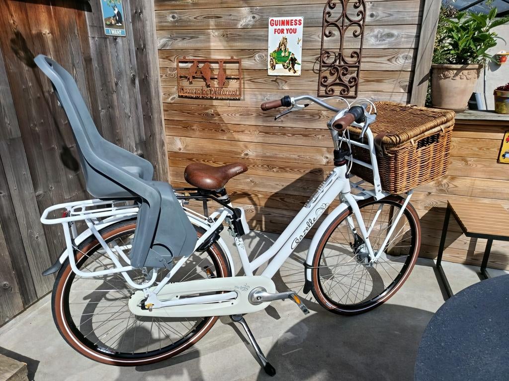 3 feb 26MarcKemzeke - Gazelle bloom mamafietsDeze fiets heeft een ruime, lage instap. Ruim plaats voor een kinderzitje aan het stuur en/of achterop. Een veilige, verende zadelpen voor dat extra beetje comfort. Nexus 7 versnellingen en rollerbrakZo goed als nieuw Ophalen