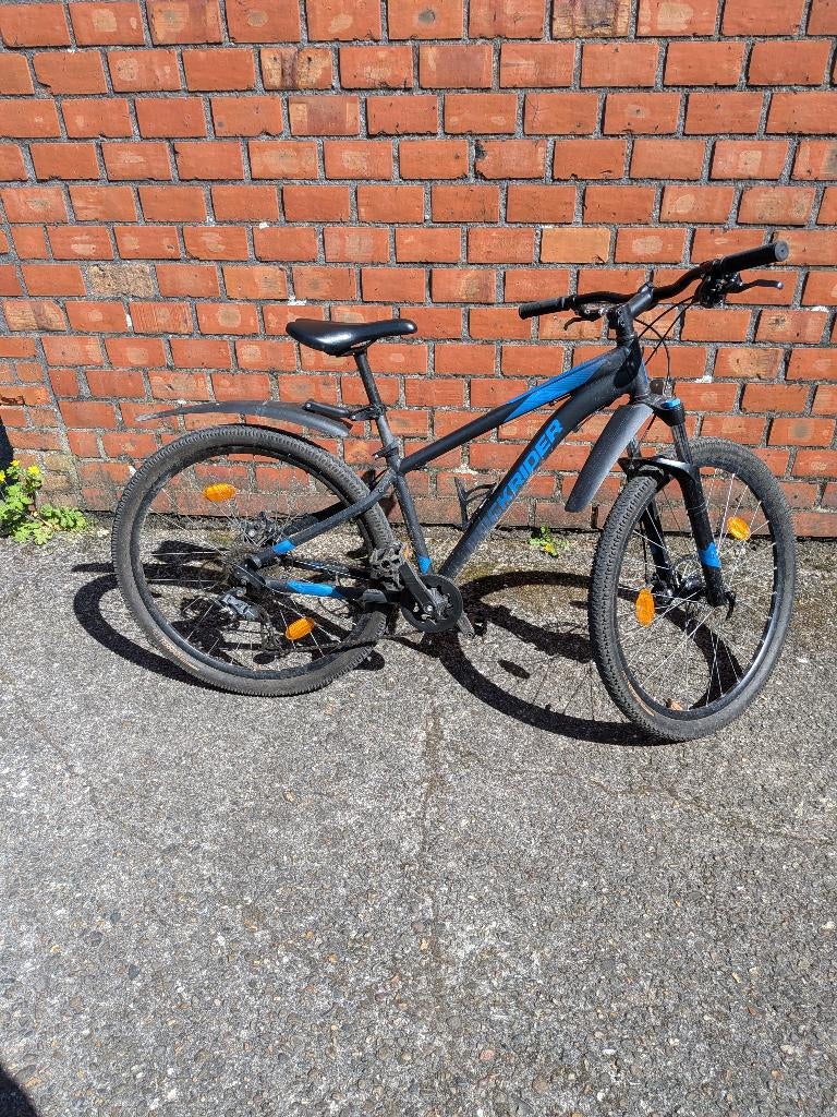 19 mrt 26W. EKCMoorslede - Stoere mountainbike 27.5 inch Rockrider st100 DecathlonRockrider st100, meisjesfiets, gebruikt maar nog in goede staat, banden profiel ok maar wat droogtescheuren. Schakelt perfect, geveerde voorvork. 21 Versnellingen, spatbord voor en achter, bar-ends opOphalen