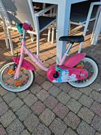 Een roze kinderfiets van prestige. Wieltjes om achteraan te bevestigen voor het leren fietsen. Zitje achteraan. Details zie foto.