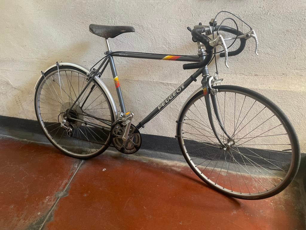 4 apr 26stefanHoeselt + Deel Van Tongeren - Retro koersfiets peugot. Donker grijsPeugot koersfiets in goede staat. Er zijn enkele gebruikssporen zoals lakschade en schade aan het stuurlint. Banden staan prima in orde. Remmen zijn uitstekend. Schakelen van 1 naar 2 op het voorste tOphalen