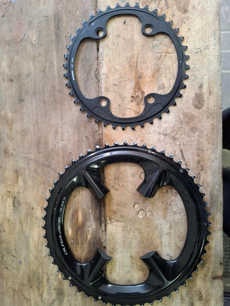 12 nov 25premium bike staalSint-Niklaas - Kettingbladen shimano dura ace 12sBij deze kettingbladen van shimano dura ace 12 speed 52/36 te koop wegens overgang naar 54 buitenblad. Deze zijn 52t buitenblad 36t binnenblad. Gebruikte maar goede staat. 9200 9250 Dura-ace kettingblZo goed als nieuw Ophalen of Verzenden