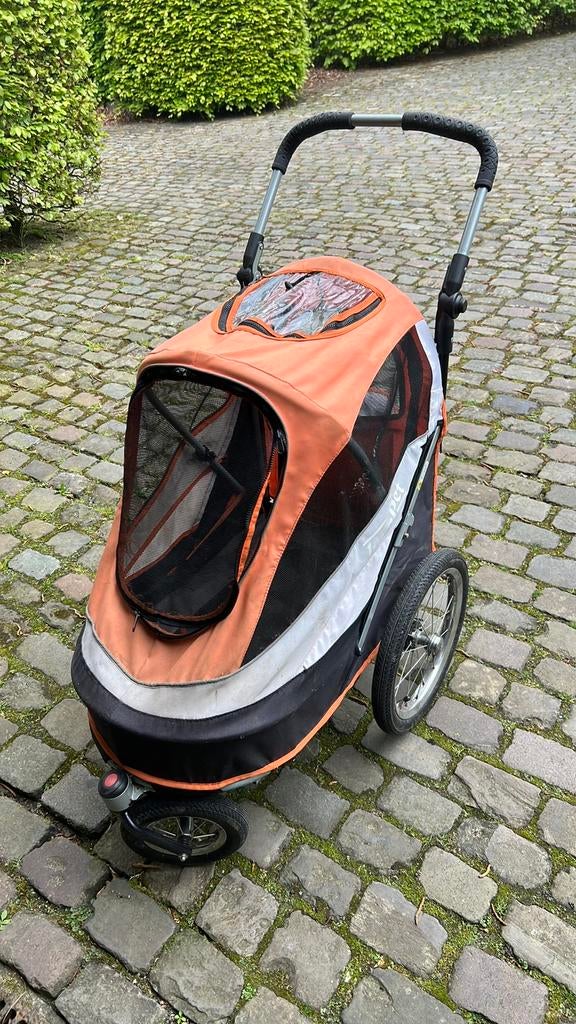 4 mrt 26NadineBrasschaat - Honden fiets kar XXLLichte scheur bovenkant voor de rest tip top in orde , banden ook nog zeer goed, is voor een grote hond maat xxl. 60Cm breed 80 cm lang en 60 cm hoog.Zo goed als nieuw Ophalen