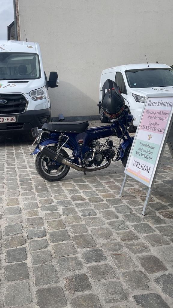 19 mrt 26Stef Van BaelWuustwezel - DaxDax72 cc - orginele stuurplaat - st50 stuur - takegawa snelgas - marchal stuurknoppen - cnc alu remmen - diamand zadel 5.5 - Over racing custom uitlaat - 5.5L frame - 12 inch alu wielen - laagprofielbGebruikt Ophalen
