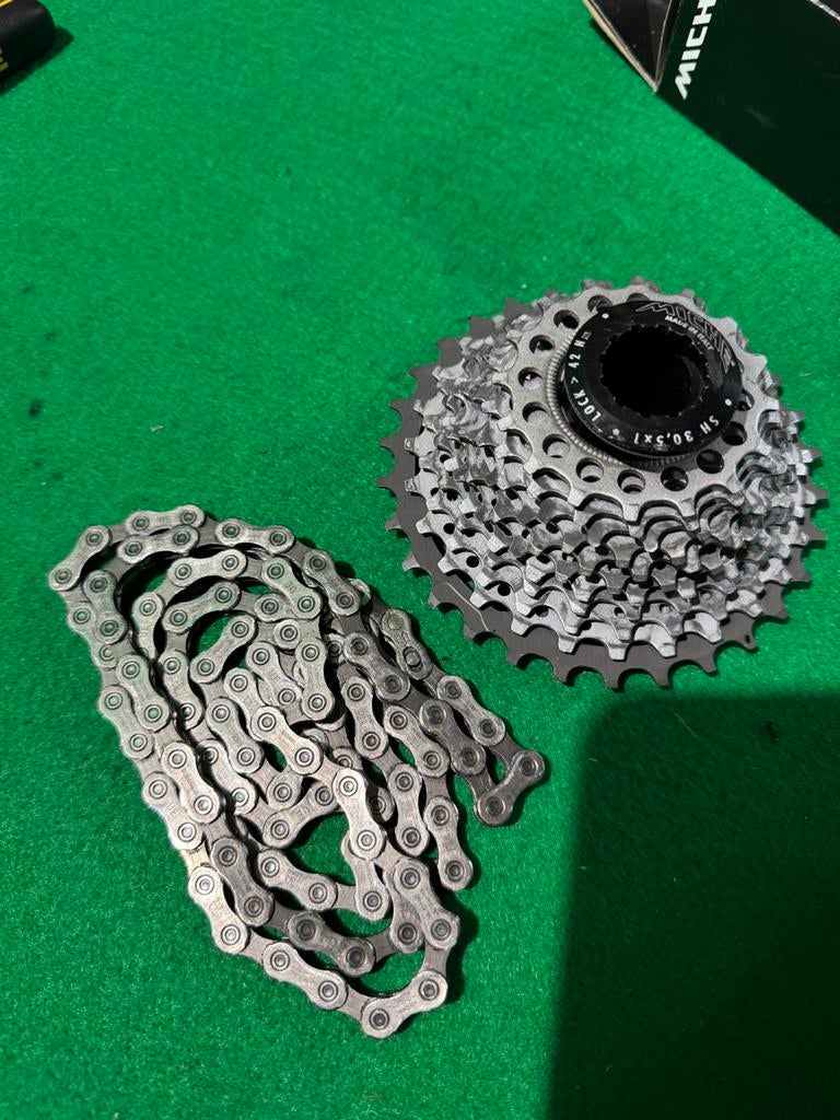 8 mrt 26AlainKortrijk - Fiets-casette "Miche""miche" casettes (zonder centerlock) 30/16 = 11speed (foto 1-5) en alsook een casette 18/32 = 11speed primato light, zonder centerlock.(Foto 6-8). Beide casettes zijn een jaartje gebruikt geGebruikt Ophalen