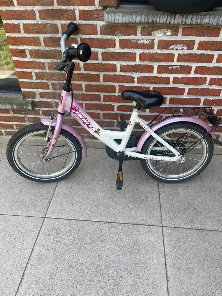 - Heel degelijke meisjesfiets NORTA, 16 inch. Zeer goede st.Heel degelijke meisjesfiets norta 16 inch. Met handrem en terugtraprem. Zeer weinig gebruikt (enkel bij grootouders). Zeer goede staat. Vraagprijs 75 euro. Af te halen in ichtegem.Gebruikt Ophalen