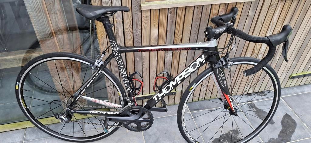 GisterenGuy HeyseKnesselare - Racefiets Thompson Capella - Full carbon - maat 52 (S/M)Thompson capella racefiets in maat 52 (s/m). Full carbon frame en afgemonteerd met shimano dura-ace. Ideaal voor de wielertoerist, beginner of gevorderd. De fiets is altijd perfect onderhouden geweestGebruikt Ophalen