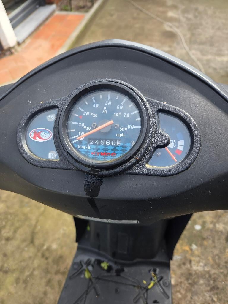 - Kymco scooter B klasse met papierenDit is al een redelijk oude scooter die duidelijk gebruikt is. Er zijn 2 mankementen 1 de achterband loopt langzaam leeg en 2 bij koude start kan hij uitvallen als je geen gas geeft. Voor de rest rijdGebruikt Ophalen14.700 km