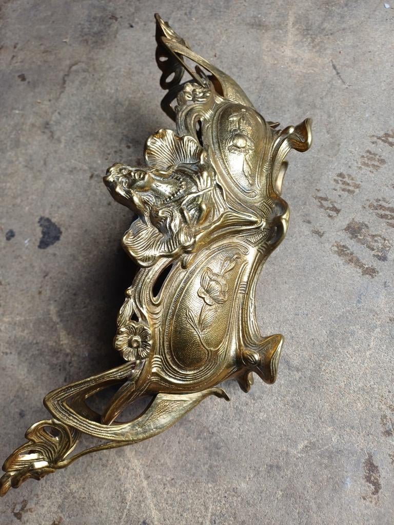 - Antieke inktpot Gesigneerd H. Gillay Art Nouveau circa 1900Antieke inktpot in art nouveau-stijl, waarschijnlijk vervaardigd uit brons of messing. Dit type decoratieve bureau-accessoires was populair rond het begin van de 20e eeuw (circa 1900-1910). KenmerkeOphalen of Verzenden