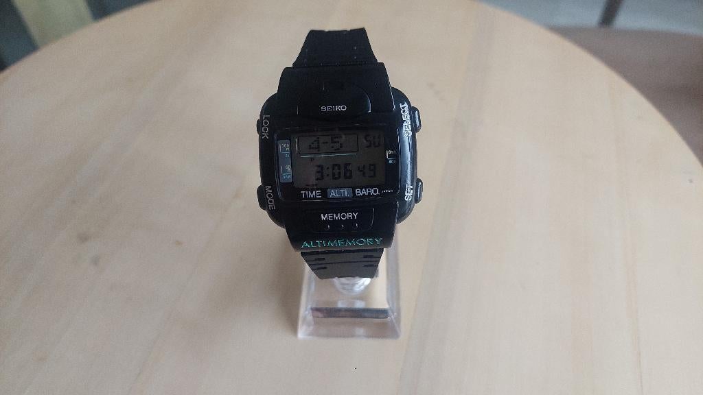 - SEIKO ALTIMEMORYSeiko altimemory w730, geproduceerd in de vroege jaren 90. Zwarte behuizing functies: tijd, alarm, hoogtemeter, barometer model dat symbool staat voor de eerste hoogtemeterhorloges werkt perfectOphalen of Verzenden